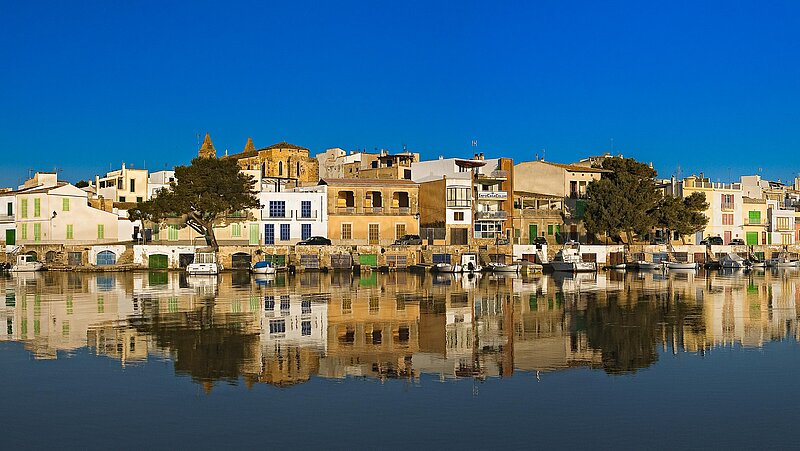 Der charmante Hafen von Felanitx im Osten von Mallorca ist ein ruhiger Ferienort, der vorwiegend von Einheimischen oder Spaniern besucht wird. In der idyllischen Altstadt rings um den Kirchplatz laden kleine Gassen zum Spazieren ein. Es gibt mehrere gute Restaurants direkt am Hafen, wo man mit herrlichem Blick aufs Meer speist. Sehr malerisch erscheinen hier die bunten Fischerhäuser mit ihren hübschen Bootsgaragen. Mieten Sie eine Finca in Portocolom und genießen Sie einen herrlichen Strandurlaub in der schönen Sandbucht Cala Marçal.